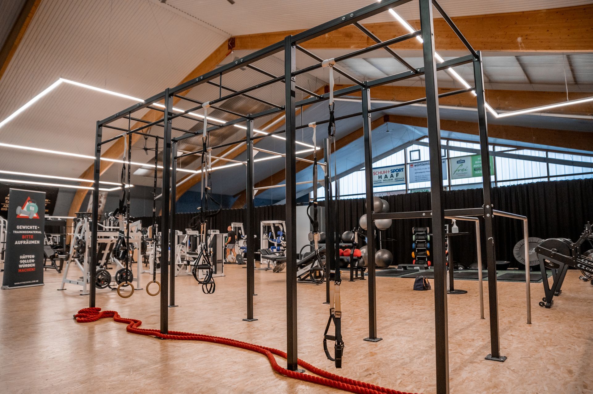 eignet sich hervorragend für Sportler und alle, die sich nach einer Herausforderung sehnen und sich mal so richtig austoben wollen. Egal, ob Gerätetraining, freies Training oder funktionelles Training mit dem TRX-Suspension-Trainer. Sogar ein Klettergerüst